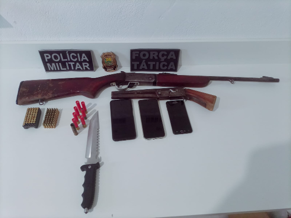 A PM, assim que foi acionada, dirigiu-se até a rua Quatro, bairro Serra Nova, município de Bom Jesus. Ao chegar na residência apontada no documento do mandado, a polícia além de localizar o indivíduo, ela encontrou os seguintes materiais: um Rifle calibre 22, uma Garruncha calibre 36, 103 munições, três celulares e um punhal.