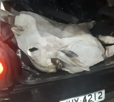 A PM informou que por volta das 23h daquela noite, recebeu a denúncia que três homens teriam matado um boi no Povoado Juá e que os mesmos tinham saído no sentido de União. Diante disso, uma viatura da polícia abordou os suspeitos no rodoanel de União, sentido Teresina, onde encontrou o animal morto no porta-malas do carro.