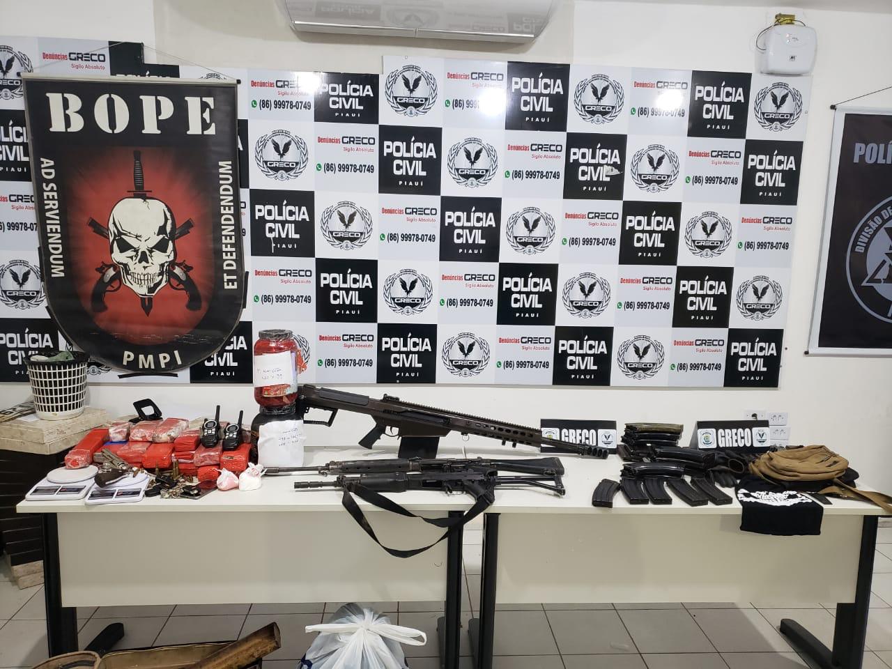 A Polícia Civil do Piauí e a Polícia Militar do Piauí deflagraram operação na noite dessa quinta-feira, 16, e apreenderam três fuzis e centenas de munições, além de drogas e outras armas. A Operação foi desenvolvida pelo Grupo de Repressão ao Crime Organizado, em parceria com o Batalhão de Operações Especiais da Polícia Militar, Batalhão Rondas Ostensivas de Natureza Especial (RONE) e Diretoria de Inteligência da Secretaria de Segurança Pública.