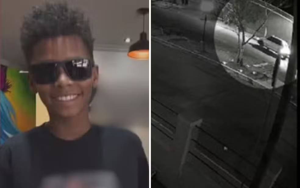 Momento em que o adolescente Talisson Ferreira é abordado por carro em rua de Silvânia, em Goiás | FOTO: Reprodução