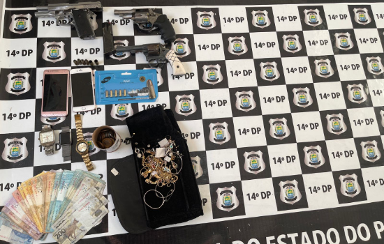 A ação foi desenvolvida por investigadores lotados naquela unidade policial após diligências para identificar, localizar e prender criminosos que roubaram telefones, dinheiro e joias de vítimas no município.