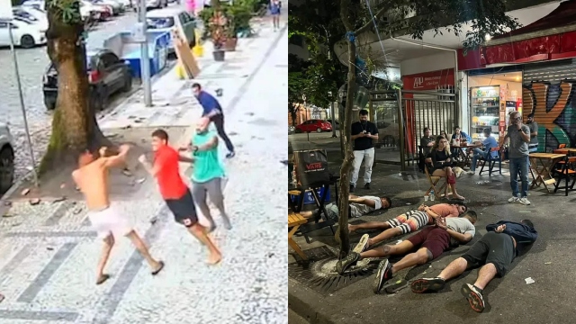 A ação dos criminosos contra o jogador foi gravada por câmeras de segurança de estabelecimentos. Nas imagens mostram a sequência que acabou com a vítima baleada. O atleta é visto a caminho da Praia de Copacabana, quando ele para perto de um edifício e se posiciona para urinar. Logo em seguida, três suspeitos se aproximaram do rapaz.