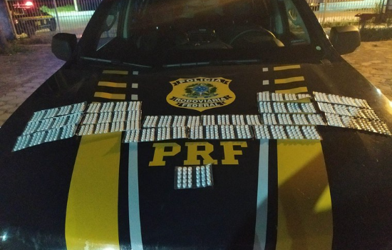 Durante busca veicular, os policiais encontraram, dentro de uma mala, uma sacola branca contendo 17 cartelas com 60 comprimidos e 1 cartela com 30 comprimidos, totalizando 1.050 comprimidos de Nobésio Extra Forte, classificado como anfetamina, classe de drogas sintéticas que estimulam o sistema nervoso central e prejudicam a condução de veículo automotor.