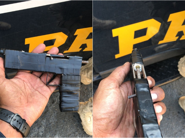 Ao realizarem vistoria nos ocupantes, foram encontrados com o condutor, um homem de 18 anos, uma arma artesanal e uma munição, e com o passageiro, este menor de idade, três celulares. Segundo relato do condutor, os aparelhos seriam fruto de roubo.