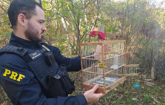 Policiais rodoviários federais autuaram um homem e resgataram 12 pássaros silvestres transportados irregularmente, na quinta-feira (11). O flagrante ocorreu na BR 316, em Picos.