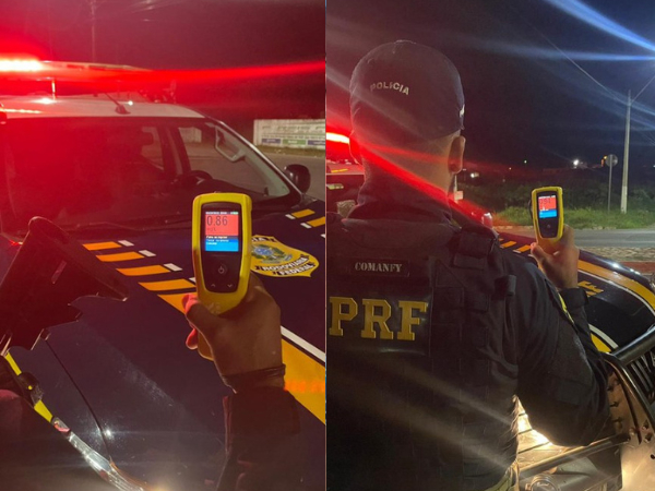 Foi ofertado o teste de etilômetro, que constatou o teor de 0,94 miligramas de álcool por litro de ar expelido pelos pulmões, índice 23 vezes acima do limite regulamentar. O condutor foi indagado sobre o uso de bebida alcoólica e informou que havia bebido duas latinhas de cerveja.