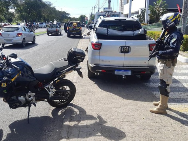 Uma equipe do grupo de motociclismo tático da PRF realizava ronda pela BR-343, trecho da Avenida João XXIII, quando abordou um veículo Fiat/Toro ocupado por três homens.
