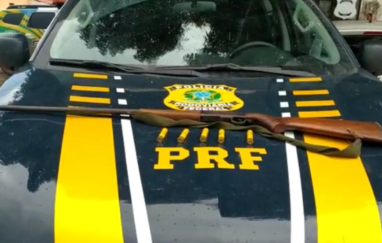 PRF pende homem por porte ilegal de arma de fogo (Foto: Reprodução)Durante abordagem, o condutor aparentava está bastante nervoso. Ao realizarem busca veicular, os policiais encontraram uma espingarda cal. 28 no porta-malas do veículo. O homem não apresentou a documentação necessária para assegurar o porte no momento da abordagem.