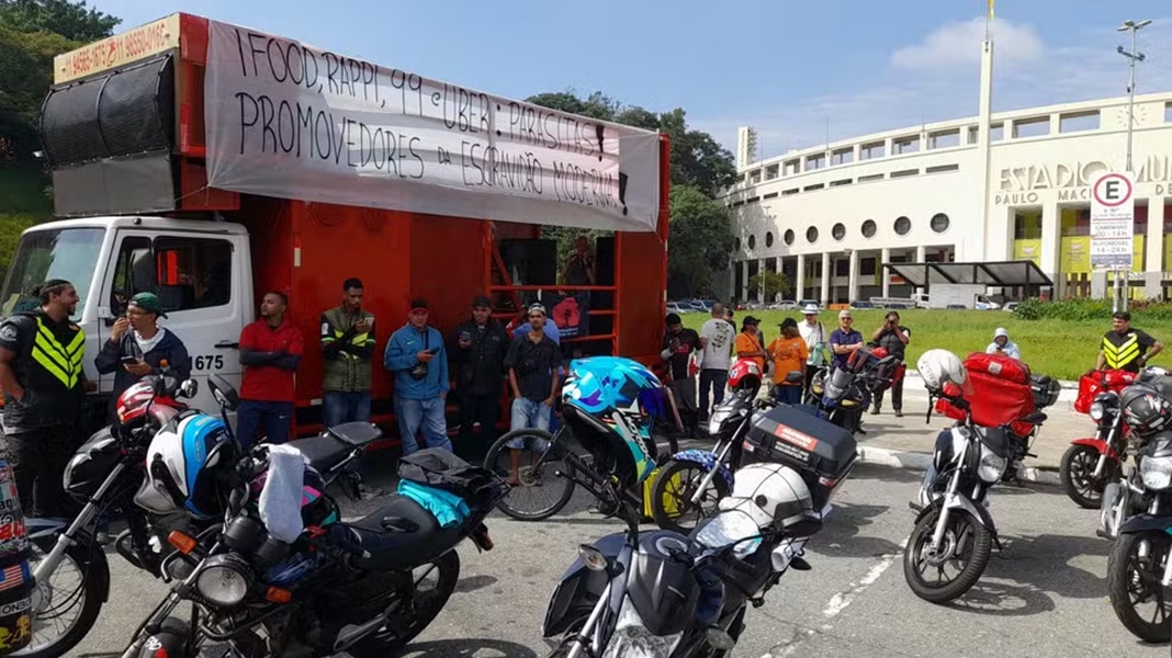 Os entregadores por aplicativo de comida e outros serviços, que busca melhores condições de trabalho e reajuste nas tarifas pagas pelas plataformas.