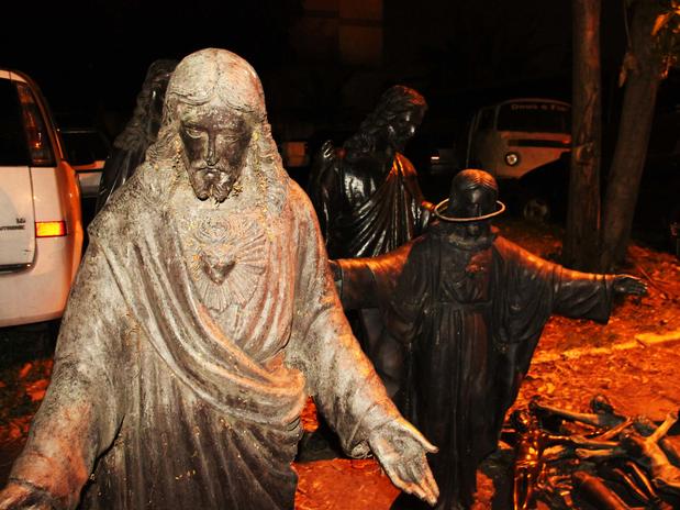 Quadrilha é flagrada roubando estátuas dentro de um cemitério