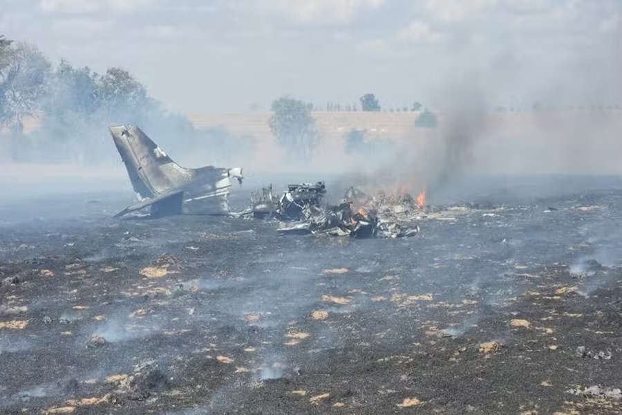 Ainda de acordo com a polícia, a aeronave pegou fogo após a queda, e as chamas se alastraram, atingindo parte da área de pastagem da propriedade rural.