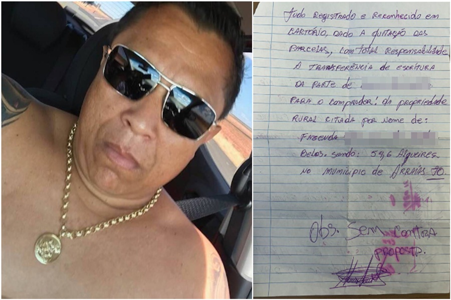 Durante a operação, os investigadores também apreenderam em sua residência um documento que sugeria a intenção de compra de uma fazenda de 54 alqueires, em Tocantins, através de um contrato de gaveta. A negociação envolvia um pagamento inicial de R$ 50 mil e parcelas intermediárias, além de uma arma de fogo como parte do pagamento. A fazenda seria registrada em nome de uma terceira pessoa escolhida por Bodão.