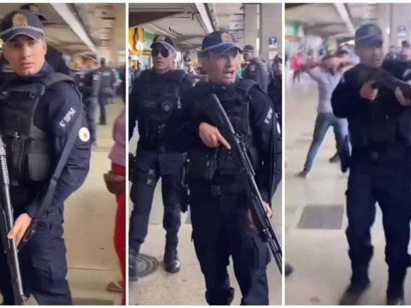O soldado identificado como Iuri Edson Azevedo Gomes apareceu ontem, terça-feira (23) em vídeo, enquanto grita com pessoas que estavam na rodoviária do Plano Piloto, em Brasília, durante operação policial. Iuri aponta uma escopeta calibre 12 contra as pessoas. No vídeo da abordagem policial, o militar se destaca pela agressividade e chegou a perguntar a quem passava pela rodoviária “quem quer tiro?” .