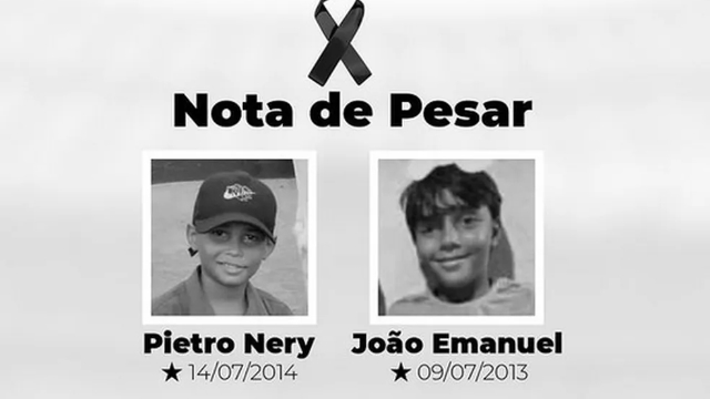 Pietro Nery, de 9 anos, e João Emanuel, de 10 anos, morreram ainda no local. Outros sete meninos ficaram feridos.