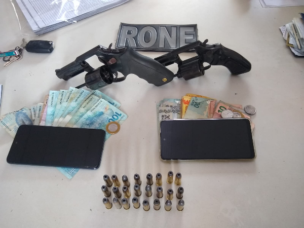 Ao Meionorte.com, o sargento Klebert, do BPRone, explicou que o segundo autuado na ação, J. F. A. S, de 44 anos, responde por roubo e porte ilegal de arma de fogo em Caxias, no Maranhão. Com eles foi apreendido dois revólveres calibre 38, da marca Tauros, 24 munições do mesmo calibre; a quantia de R$ 2.527,25 e dois aparelhos celulares. Os presos alegaram que as armas seriam para uso e defesa pessoal.