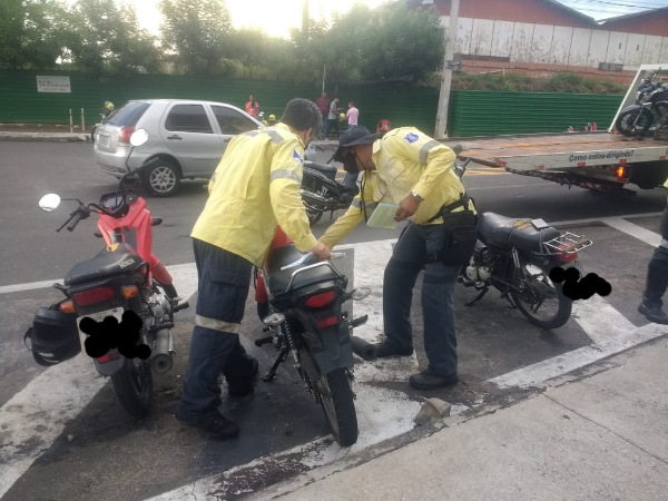 Durante operação de rotina de fiscalização de trânsito de veículos estacionados em áreas não autorizadas, de acordo com o CTB, na segunda-feira (14), a equipe de Agentes de Trânsito, em conjunto com a Guarda Civil Municipal (GCM), recuperou uma moto roubada, com ausência de emplacamento e apreendeu outras motos estacionadas em áreas não autorizadas nos termos da Lei Federal n° 9.503/97, Código de Trânsito Brasileiro (CTB).