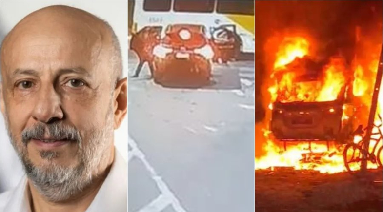 Ex-delegado-geral, criminosos com armas e carro pegando fogo | Foto: Reprodução