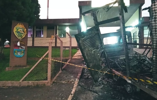Carro foi incendiado em frente à unidade da PM | Foto: Eduardo Andrade/RPC
