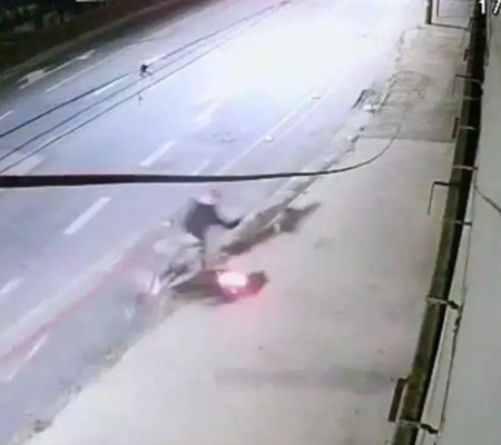 O suspeito preso fugiu pelo bairro Vista Alegre e se deparou com uma rua sem saída, que termina com uma escadaria para pedestres. Na fuga ele desce de moto pela escadaria e “voa” caindo na avenida Tereza Cristina.