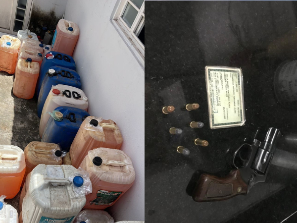No Bairro São Sebastião, ainda pela manhã, o cumprimento de mandado de busca em uma residência resultou na apreensão de 660l (seiscentos e sessenta litros) de gasolina armazenados de forma irregular, material este que foi apreendido e o proprietário, que não se encontrava no momento, devidamente identificado para posterior responsabilização pelo crime ambiental.