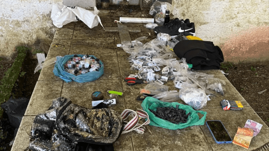 Foram apreendidos 409 cápsulas de cocaína (925 gramas), um tablete e nove tiras de maconha (329 gramas), 50 frascos de lança-perfume (800 ml) e diversas etiquetas contendo a descrição de uma facção criminosa da região.