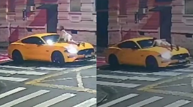 Imagens de câmeras de segurança registraram o momento em que o veículo de luxo trafega com a vítima pendurada sobre o capô, segurando-se nos limpadores do para-brisa para não cair. Em determinado trecho, ela consegue se erguer e chega a se sentar sobre o carro, mas o motorista continua acelerando, mantendo o deslocamento pelas ruas. Veja: