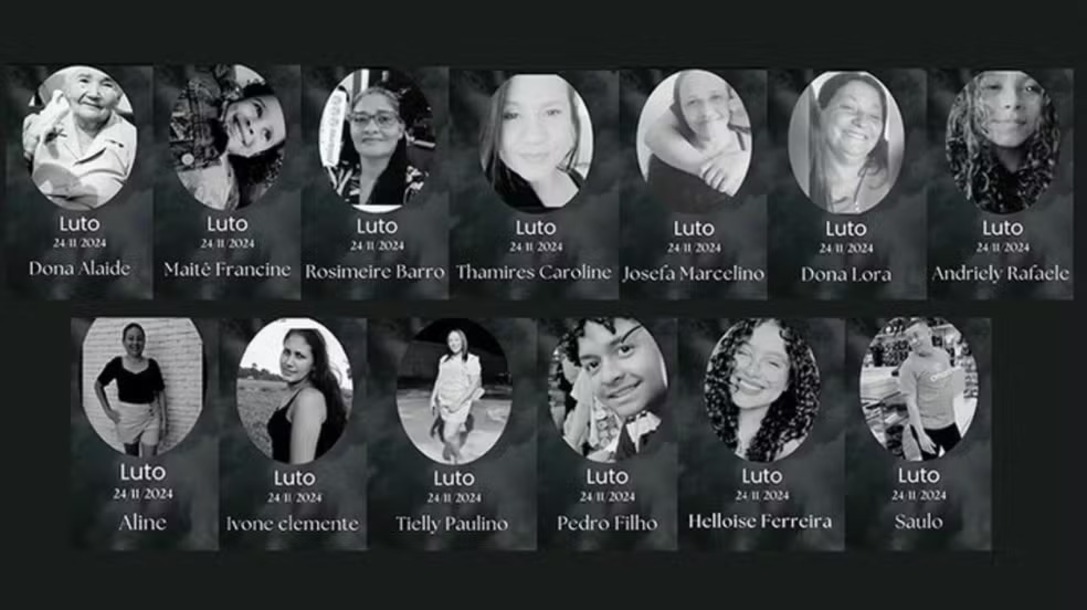 A lista se refere aos dezesseis corpos que foram liberados para sepultamento nesta segunda-feira (25). De acordo com o Instituto Médico Legal (IML), dois corpos ainda aguardam a identificação oficial da família.