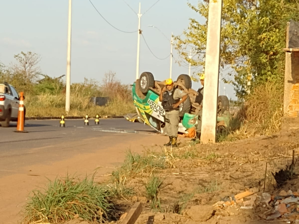 Uma viatura do Batalhão de Polícia Rodoviária Estadual (BPRE) capotou na tarde desta terça-feira (04),após um acidente na Avenida Aviador Rossini, região do bairro Vale do Gavião, na zona Leste de Teresina.