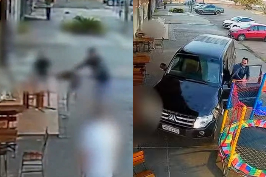 O vídeo mostra o advogado, que trajava bermuda e camisa preta, agredindo uma mulher e um homem, enquanto uma segunda mulher tenta separar a confusão. Ele deixa o local, mas retorna e agride novamente a companheira, que estava sentada.
