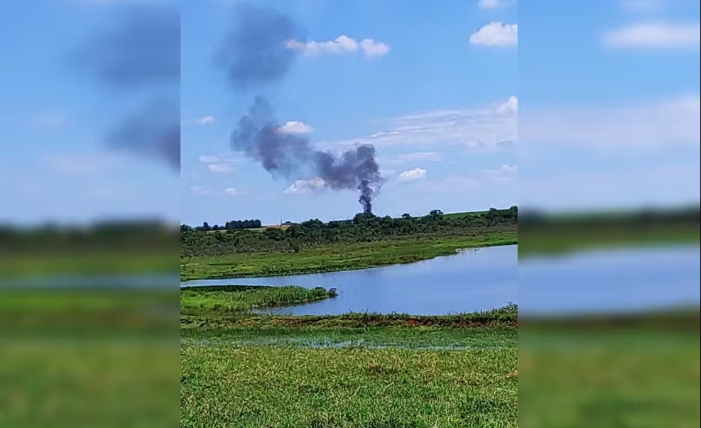 Imagens registradas logo após o acidente mostram um incêndio no canavial, com intensa fumaça.
