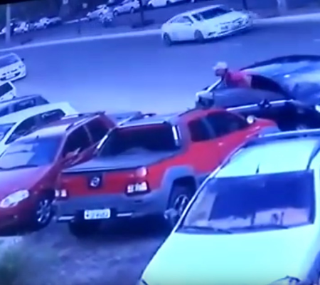 Na ação, que aconteceu na segunda-feira (20/05) é possível ver o motorista do veículo estacionando, descendo do carro e indo em direção ao seu local de destino, atravessando a avenida.