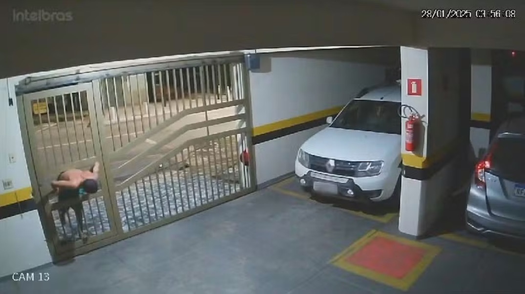 Um criminoso realizou uma invasão curiosa em uma garagem de um prédio em Divinópolis, no Centro-Oeste de Minas Gerais, ao se espremer por uma abertura de apenas 15 centímetros no portão. O roubo foi flagrado pelas câmeras de segurança do local.