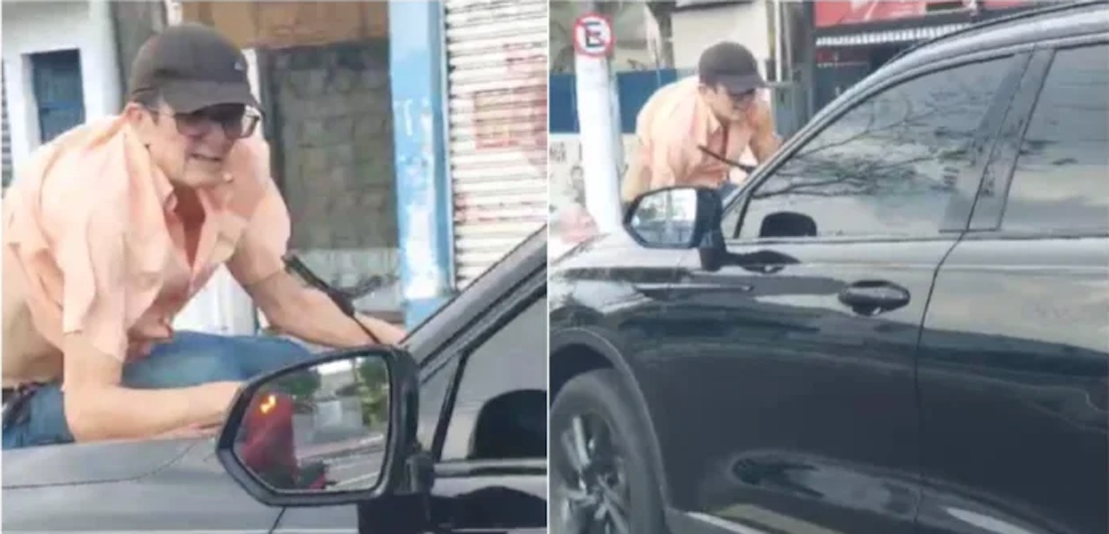 Nas filmagens, é possível ver o veículo em alta velocidade, enquanto o idoso se agarra ao capô, tentando não cair. Motociclistas que passavam pela avenida tentavam intervir, sinalizando para que o motorista parasse.