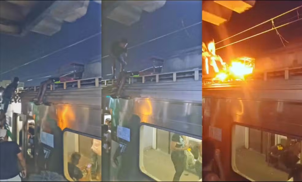 Vídeos mostram passageiros tentando, sem segurança, socorrer o rapaz. Ele aparece caído no teto do vagão quando um homem tenta reanimá-lo. Nesse momento, acontece uma explosão na rede elétrica, e todos sem correndo.