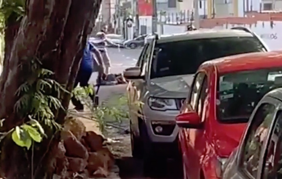 Nas imagens, é possível ver Ezequiel abaixado sobre o corpo da vítima possivelmente desferindo facadas contra ela quando homens que presenciaram o crime, procuram pedras e paus na tentativa de atingir o acusado, mas ele foge a pé com a faca na mão.