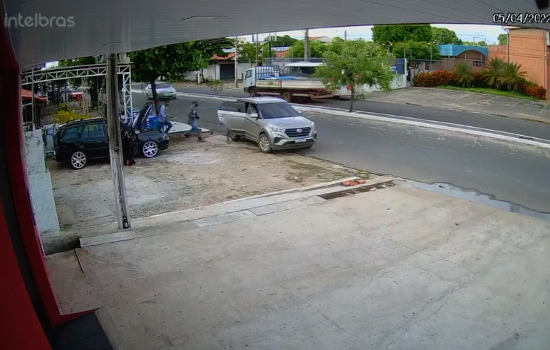 No vídeo, é possível ver o momento que um veículo modelo Creta de cor cinza chega no local e três homens armados descem do carro. Um quarto criminoso fica na direção do carro.