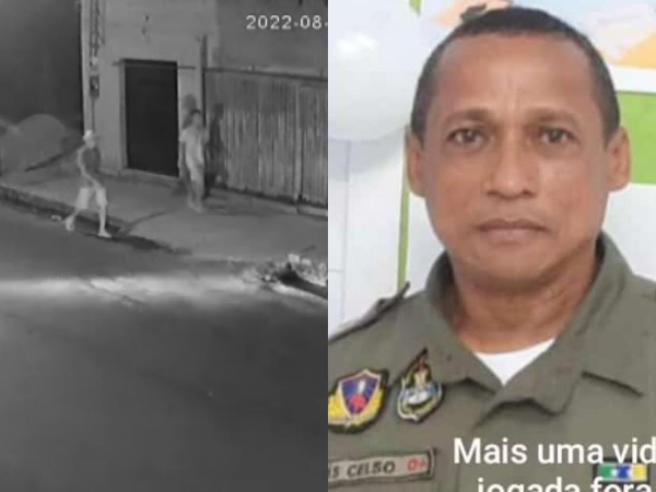 Imagens de câmeras de segurança mostram o momento em que os dois suspeitos de matarem o subtenente Luís Celso com um tiro na cabeça na noite de quinta-feira (18), caminham pela rua José Santana, no bairro Nova Brasília, na zona Norte de Teresina, onde aconteceu o crime.