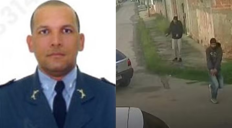 As imagens mostram o PM estacionando seu carro na rua, em frente a uma casa. Logo em seguida, um dos passageiros do veículo de cor mais escura atira pela janela do banco traseiro direito. O homem dispara uma sequência de tiros apenas com a arma pela janela.