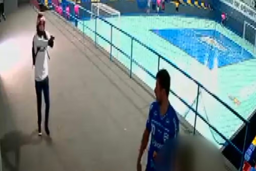 No vídeo, é possível observar o professor conversando com uma colega. Quando repentinamente, um homem de capacete e blusa branca se aproximou pelas costas da vítima e disparou. Diego caiu e o homem continuou atirando. Em seguida, o atirador fugiu.