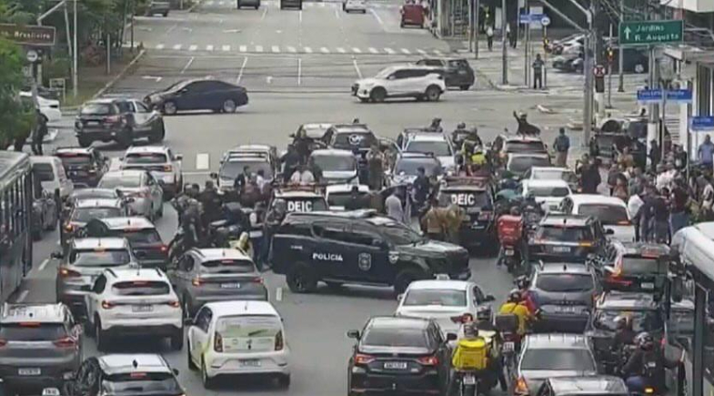 A perseguição aos suspeitos durou cerca de 23 minutos, terminando na Avenida Brigadeiro Faria Lima, centro financeiro de São Paulo, perto da esquina com a Cidade Jardim.