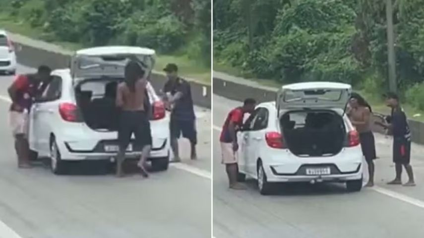 Neste domingo (17), motoristas foram aterrorizados por assaltantes na Rodovia Cônego Domênico Rangoni, no Guarujá, litoral de São Paulo. Os criminosos aproveitaram que o trânsito no local estava consideravelmente lento devido a grande quantidade de carros e atacaram um veículo parado, a ação foi filmada por outros motoristas que estavam na via.