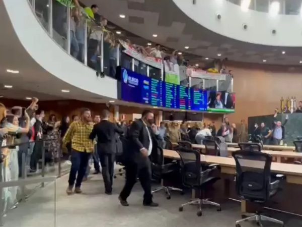 A invasão ocorreu após os parlamentares rejeitarem o requerimento apresentado pelo deputado estadual Eduardo Prado (PL), que pedia a retirada dos projetos da pauta do dia.