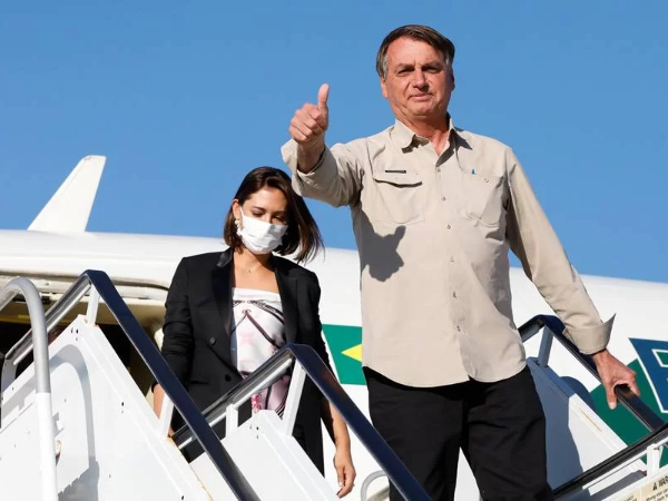 Bolsonaro viajou numa aeronave da FAB (Força Aérea Brasileira), acompanhado da primeira-dama, Michelle Bolsonaro, e de auxiliares que serão seus assessores quando virar ex-presidente.