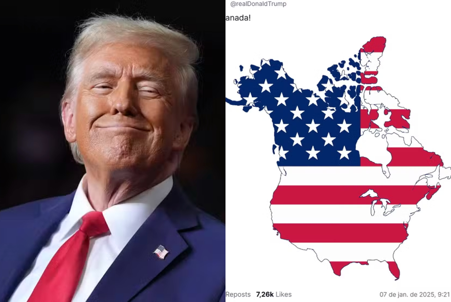 O presidente eleito dos Estados Unidos, Donald Trump, publicou na terça-feira (7) mapas em suas redes sociais indicando que o Canadá poderia se tornar o "51º estado" norte-americano. Trump vinha mencionando essa ideia desde segunda-feira (6), afirmando que a anexação seria financeiramente benéfica para ambos os países.
