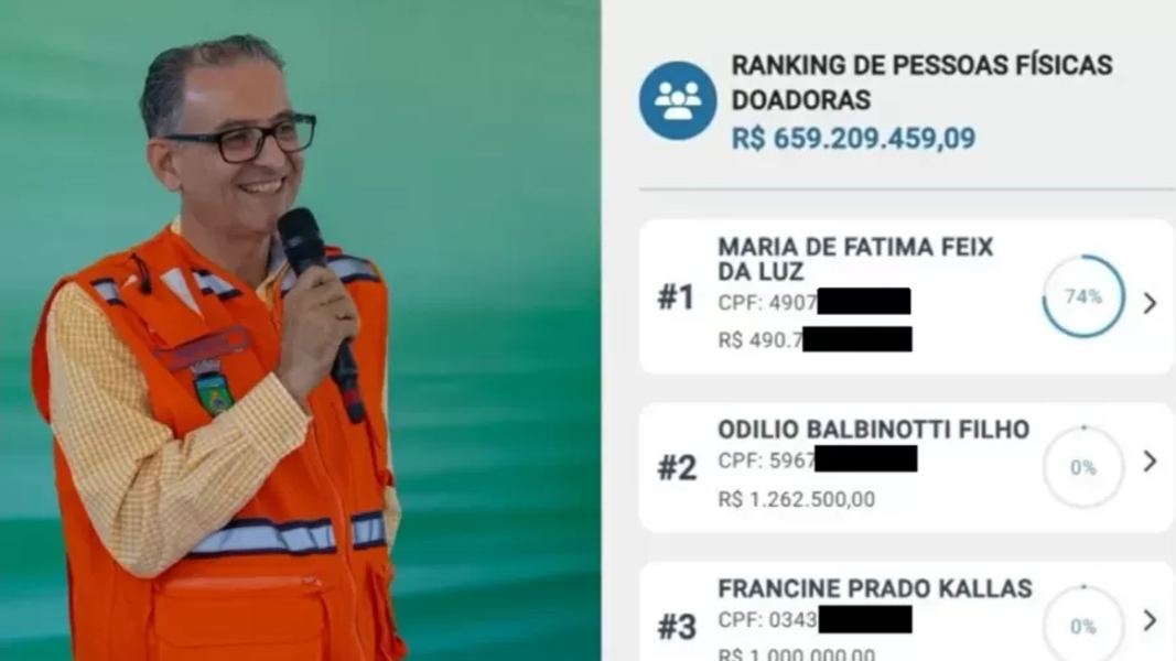 O incidente colocou a aposentada no topo do ranking de doadores, superando o empresário e ex-deputado federal Odilio Balbinotti Filho, que doou R$ 1,2 milhão