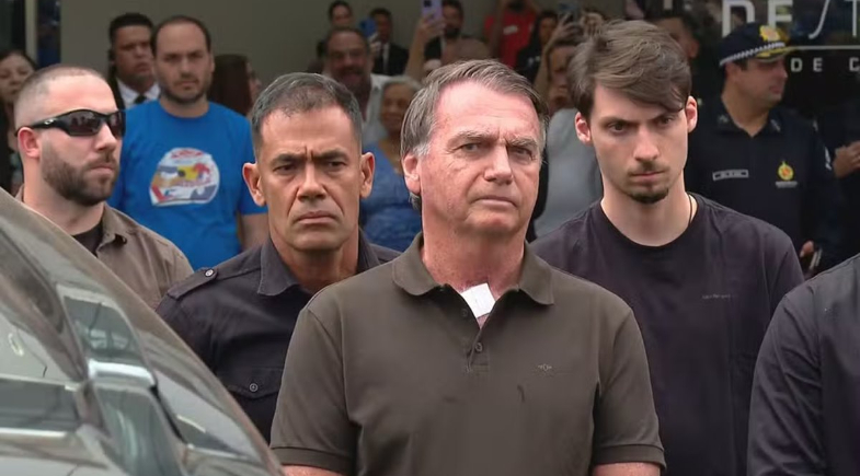 Foi a primeira vez que Bolsonaro deixou a prisão domiciliar desde sua condenação por cinco crimes no processo da trama golpista. Ele foi escoltado por motos e carros da Polícia Penal do Distrito Federal, com a presença de homens armados. O ex-presidente também teve o carro vistoriado ao deixar a casa em que cumpre as medidas cautelares impostas pelo ministro Alexandre de Moraes, do STF.