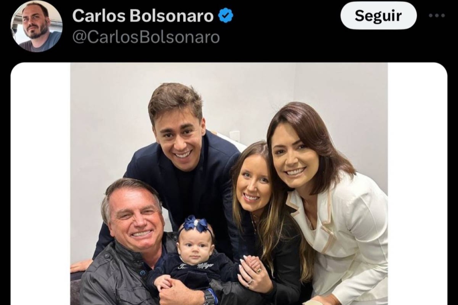 O momento de harmonia foi interrompido pelo vereador carioca Carlos Bolsonaro (PL), filho 02 do ex-presidente, que ironizou o post: “Legal o cara fazer isso com sua filha e com a minha não! De qualquer forma, parabéns sempre, grande Nikolas”. Além de comentar no Instagram, Carlos compartilhou o registro com o comentário em um post no X (antigo Twitter).