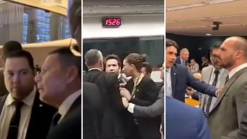 Eduardo Bolsonaro (PL-SP) partiu para cima de Dionilso Marcon (PT-RS) após discordâncias sobre a facada sofrida por seu pai, Jair Bolsonaro (PL). O episódio resultou em uma discussão intensa, com troca de ofensas e a necessidade de intervenção de colegas para conter Eduardo.