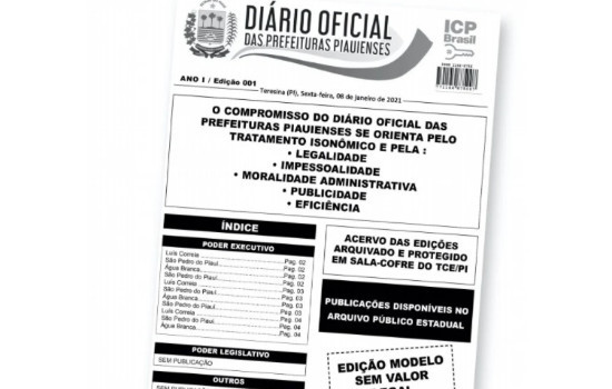O Diário Oficial das Prefeituras Piauienses é publicado diariamente, garantindo o acesso público e ilimitado, como preconiza os princípios que regem a Administração Pública.