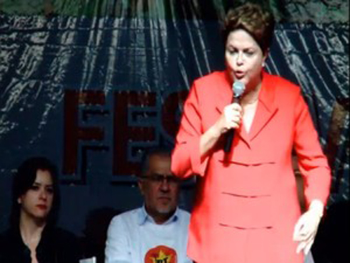 "Então, é um absurdo dizer que o dinheiro dos estádios compromete a educação no Brasil", declarou Dilma para a plateia de militantes do Festival de Política, Arte e Cultura da Juventude do PT.